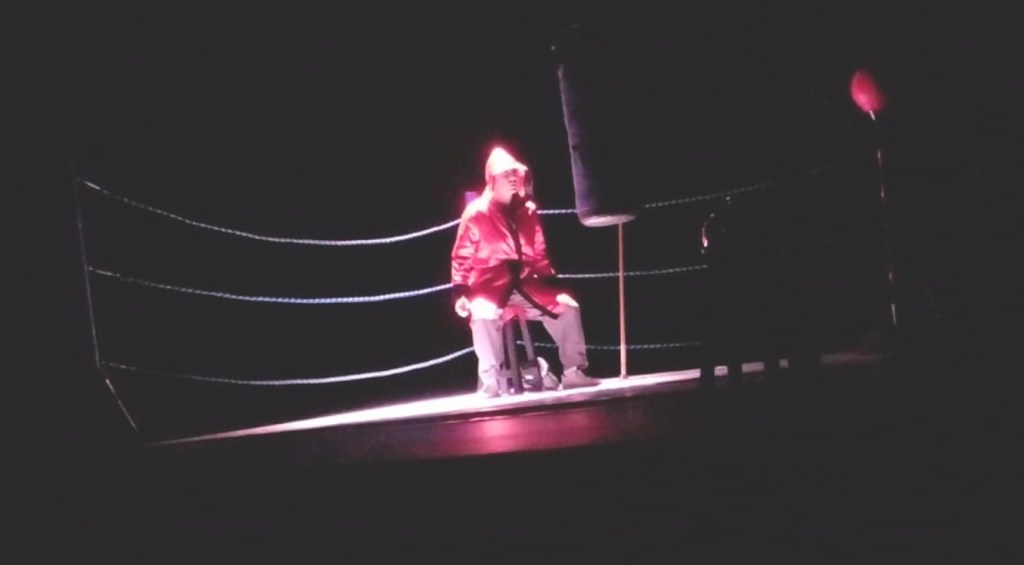 El escenario de este monólogo consistió en un ring en el que cada objeto representaba a los personajes, por ejemplo, Zeus era un saco de boxeo; Penteo, una máscara de lucha libre; Baco, una pera de box. Las luces del escenario clarificaban las emociones de Rea cuando narraba la historia, es decir, la ira se representaba con el rojo; el morado, el deseo; el blanco, la realidad presente y el azul, el anhelo o la tristeza.